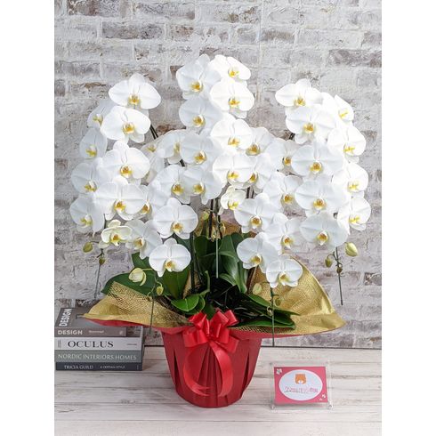 胡蝶蘭の人気ランキング No1 通常納品胡蝶蘭 白 3本立 39輪以上 23,500円~(税込) 通常納品胡蝶蘭こちらの商品は受注生産となります。 ご注文を頂いた後に花を合わせ、鉢に植え込み、3日ほど、なじませ品質確認後に発送いたします。 定番の大